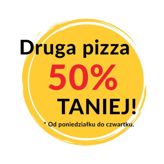Zamów pizzę Familijną, a drugą średnią pizzę otrzymasz za pół ceny.
